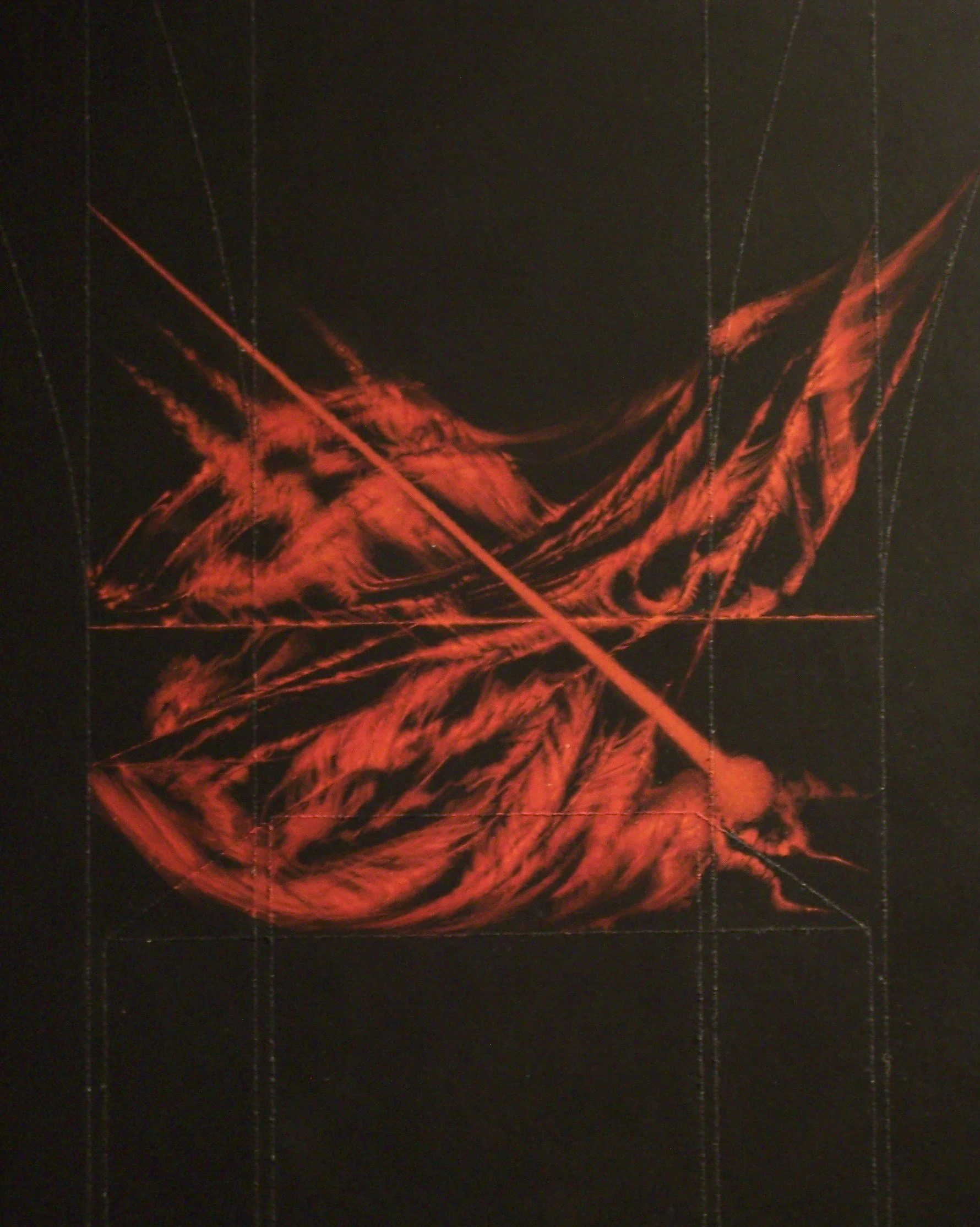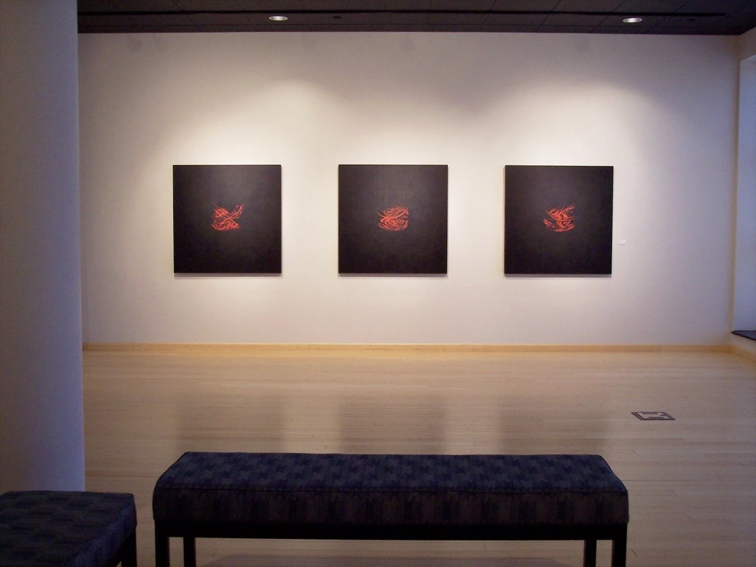 THE AKEDAH TRIPTYCH, 2008, Installation at the Gallery at Penn College, Penn College of Technology. Three works, each at 48 x 48 x 2 inches. Acrylic and mineral particle threads on archival cradled wood panels.